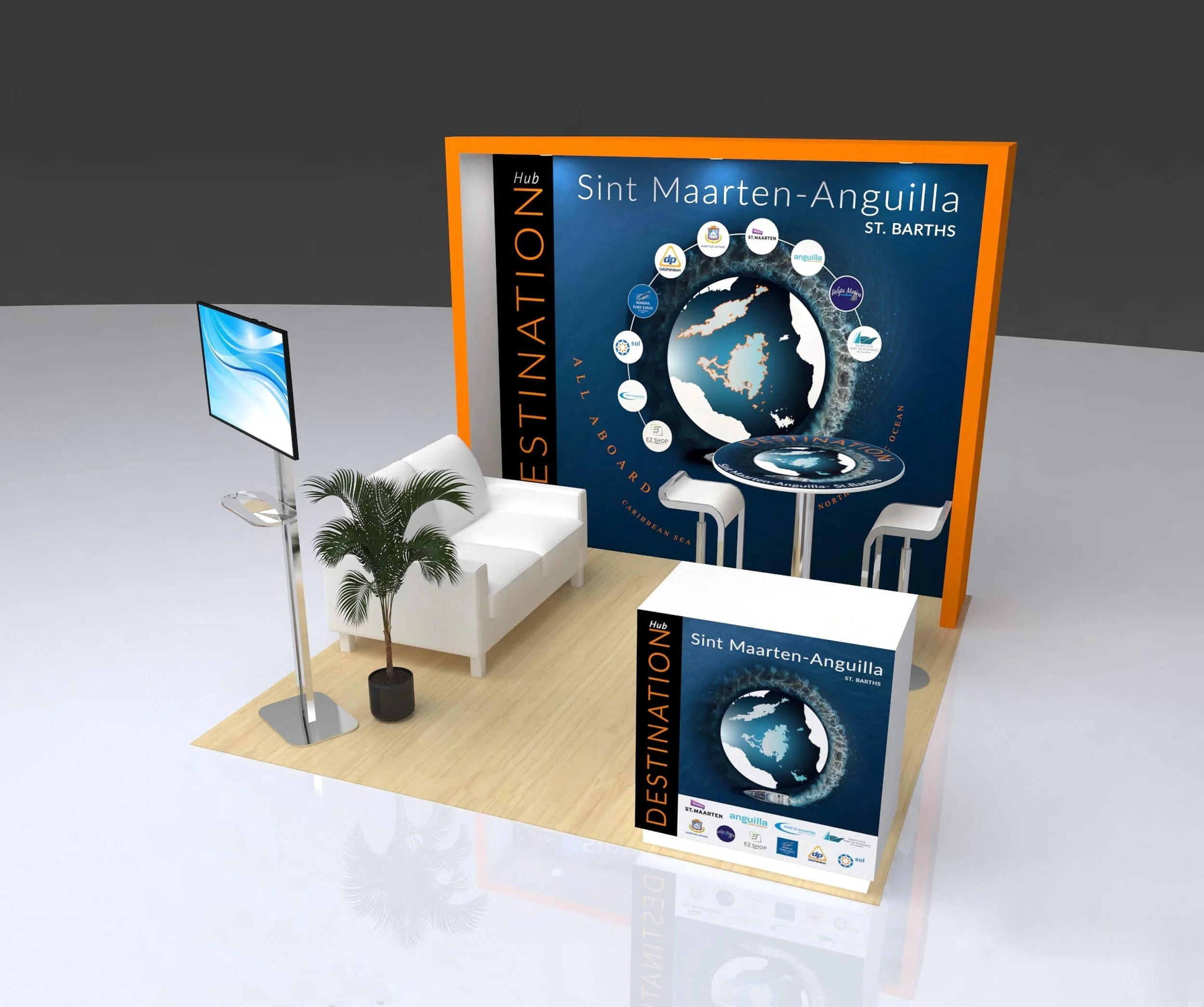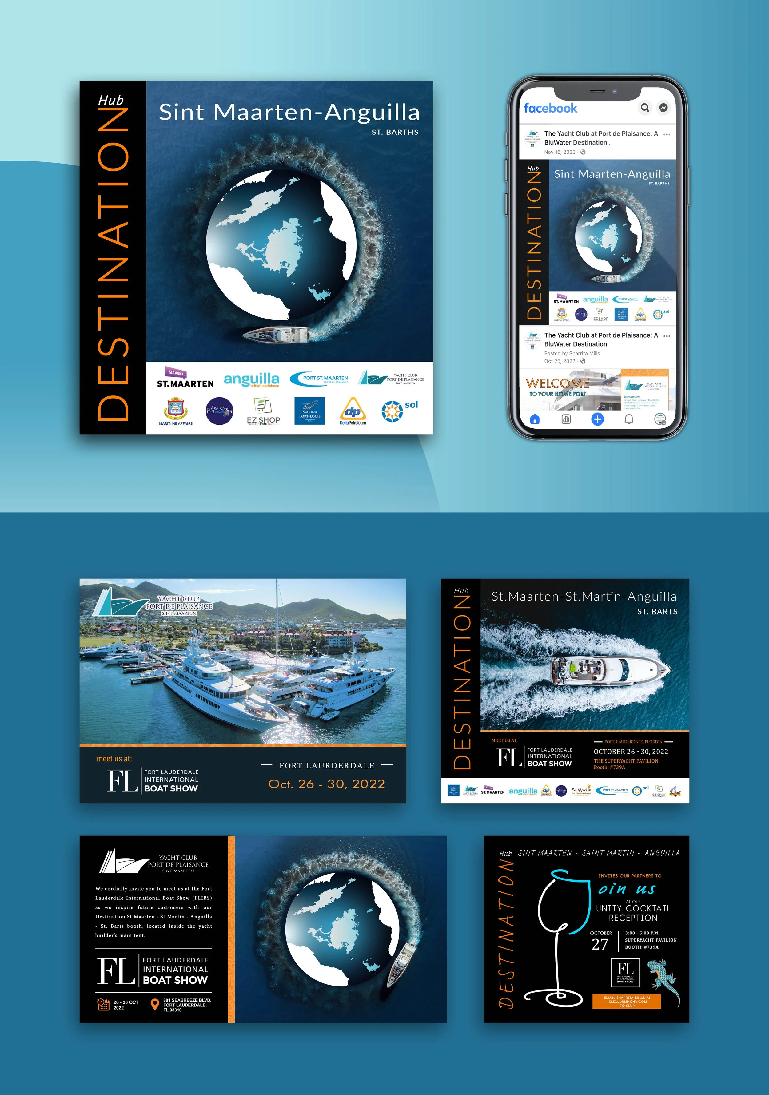 The Destination Hub: Sint Maarten-Anguilla-St. Barths was a trade show booth at the 2022 Fort Lauderdale International Boat Show, designed to market the Caribbean islands of Sint Maarten, Saint Martin, Anguilla, and St. Barths as premier global tourist and yachting destinations alongside promoting local businesses. As the graphic designer for this project, my responsibilities included: